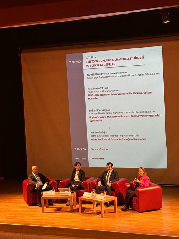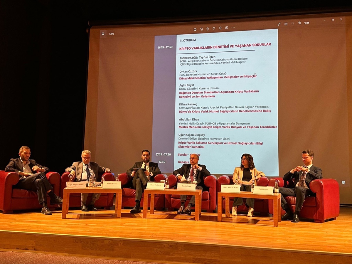 Konferansta kripto varlıkların hukuki durumundaki belirsizliklerin halen devam ettiği belirtildi; Dünya’daki menkul kıymet nitelikli tokenlara ilişkin değerlendirmelere yer verilerek, bu varlıkların vergi, muhasebe ve denetiminde dünyada mevcut olan genel eğilimlerden bahsedildi; Kripto varlıkların vergilendirilmesi için yerel mevzuatımızda bulunan yedi gelir unsurundan hangileri kapsamında değerlendirilmeleri gerektiğinin kanun hükmüne bağlanmasının yerinde olacağının altı çizilerek, bu kapsamda çalışma grubunun Gelir Vergisi Kanunu’na sekizinci gelir unsuru olarak bir “bekleme odası” işlevi görecek “Dijital Varlık Kazançları” isimli yeni bir gelir kategorisi eklenmesi önerisi hatırlatıldı; Hukuki durumu netleşen varlıkların bu “bekleme odasından” çıkartılarak, yine yedi gelir unsuru kapsamında gelir vergisine konu edilmesinin uygun olacağı görüşüne yer verildi; “Dijital varlık” tanımının UFRS kapsamında da ayrı standart olarak düzenlemesinin daha uygun olacağı, denetim konusunda ise bilişim teknolojileri (BT) ağırlıklı özellikli denetimlerin gerekliliğinden bahsedildi.